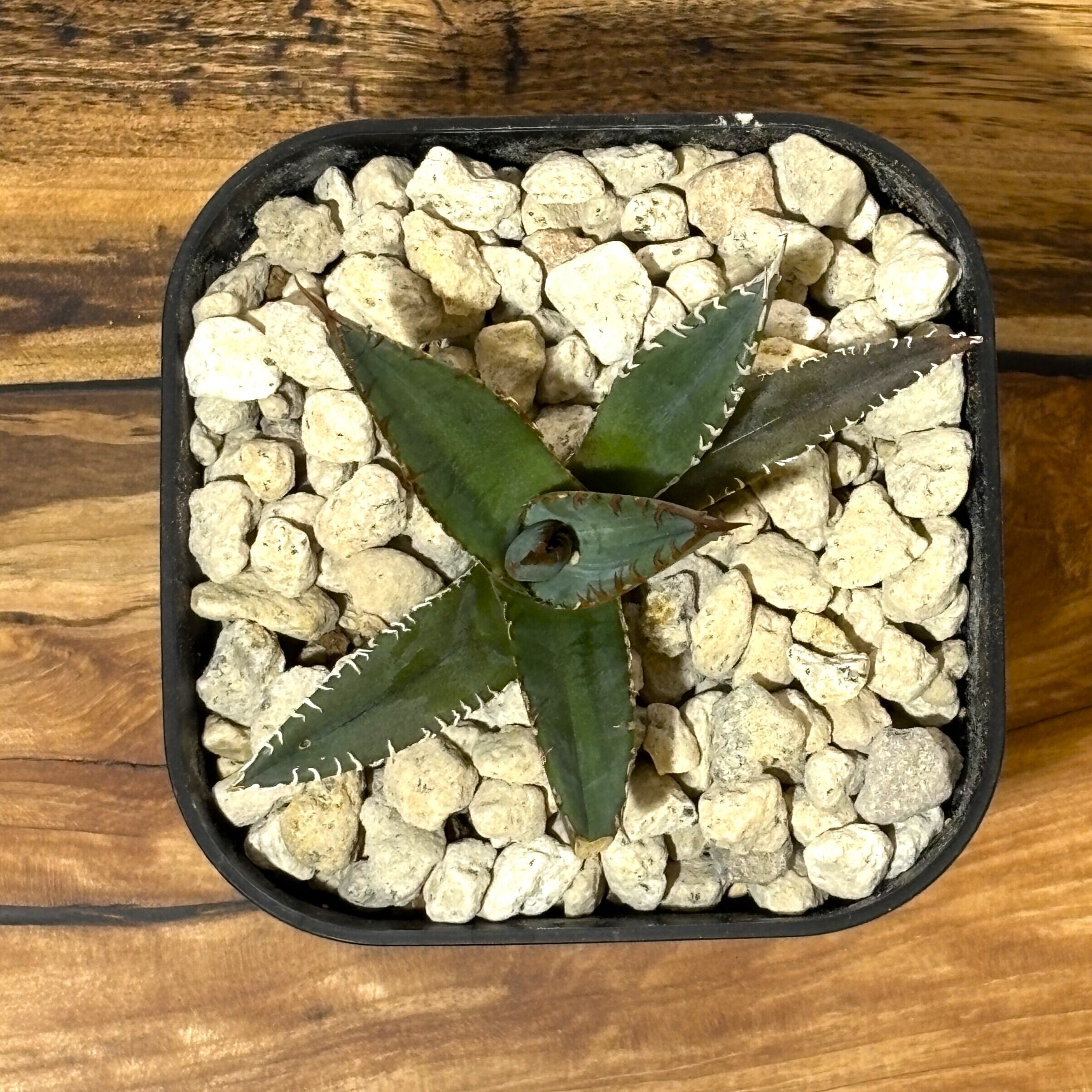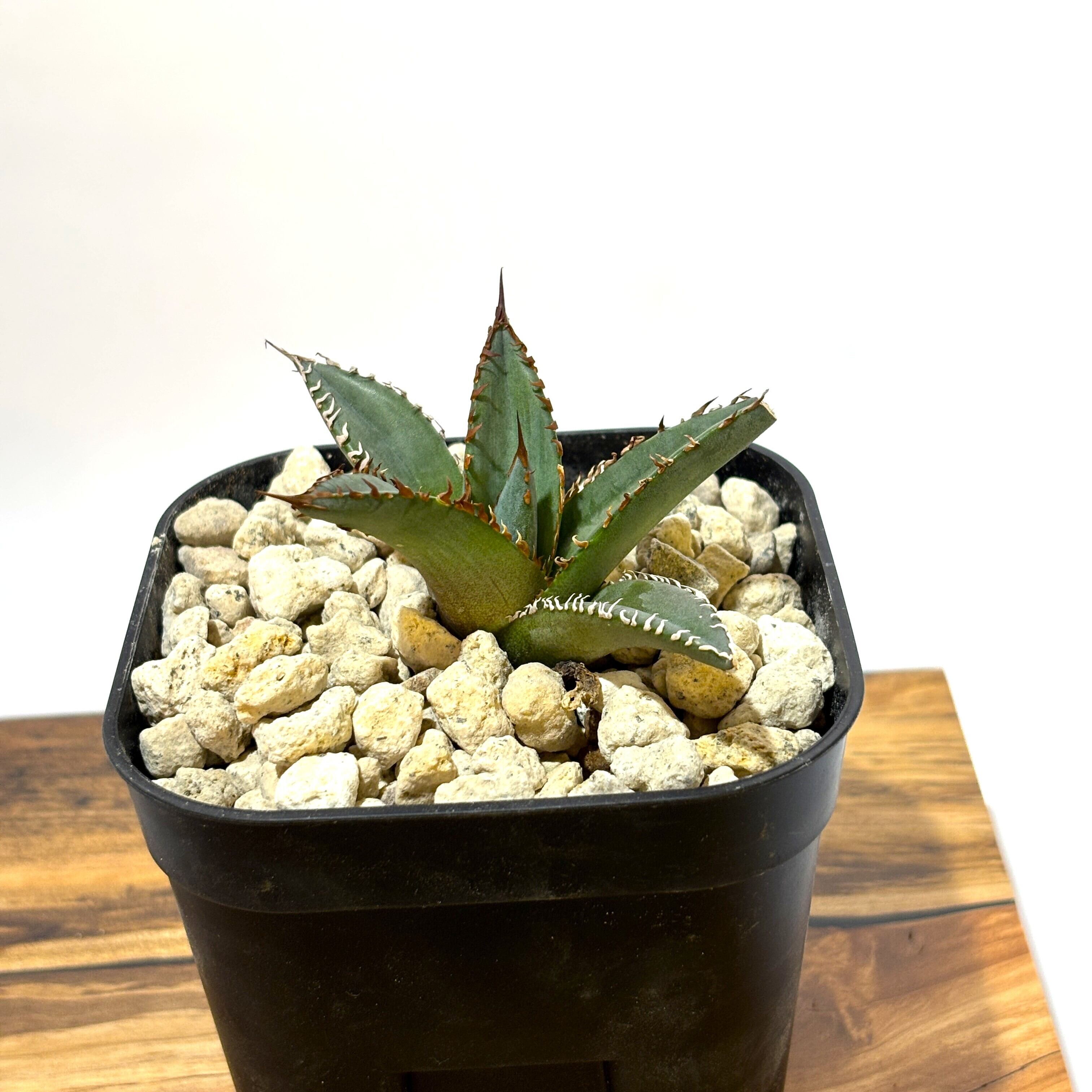 この個体は、ホワイトファング特有の白く鋭い鋸歯に加え、すでに「裏棘」の特徴が現れ始めています。現在はプレステラ(プラ鉢)管理ですが、将来は間違いなく作家鉢に収まる「作品」へと仕上がるポテンシャルを持っています。